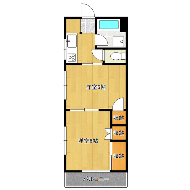 | セールスポイント | カラフルデザインの2K☆賃料お得!最上階で眺望良好! |