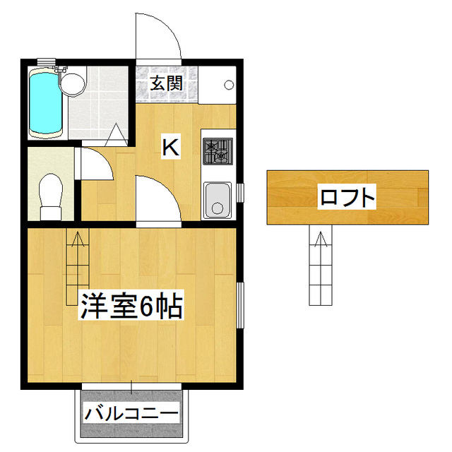 | 設備 | 電気,プロパンガス,上水(公営),下水(公営),CATV,シューズボックス,トイレ(水洗),バス・トイレ別,浴室内洗面台,シャワー,2口ガスコンロ,システムキッチン,給湯(ガス),室内洗濯置場,インターホン,ロフト,エアコン,網戸,バルコニー,フローリング,電話設置可 | ||