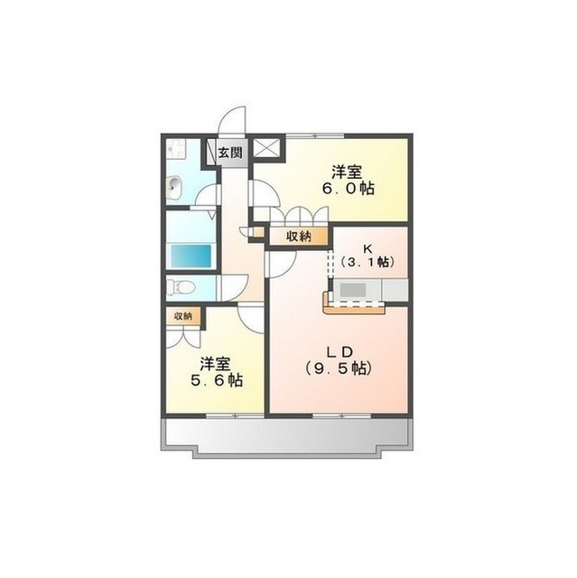 間取り | 2LDK | 専有面積 | 54.54m² |