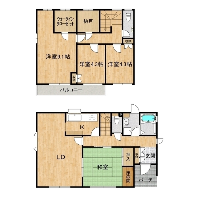 間取り詳細 | 洋室9.1,洋室4.3,洋室4.3 | ||