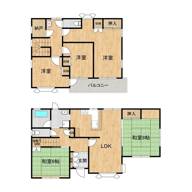 | 設備 | 電気,都市ガス,上水(公営),下水(公営),玄関ダブルロック,シューズボックス,トイレ(水洗),温水洗浄便座,トイレ2カ所,バス・トイレ別,洗面所独立,洗髪洗面化粧台,シャワー,3口ガスコンロ,ビルトインコンロ,システムキッチン,対面キッチン,給湯(ガス),室内洗濯置場,インターホン,クローゼット,押入,物置,エアコン,エアコン2台~,ビルトインエアコン,網戸,雨戸,バルコニー,専用庭 | ||