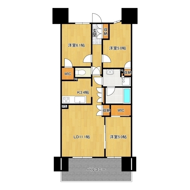 | 間取り詳細 | LD11.1,K3.4,洋室6.1,洋室5,洋室5 | ||