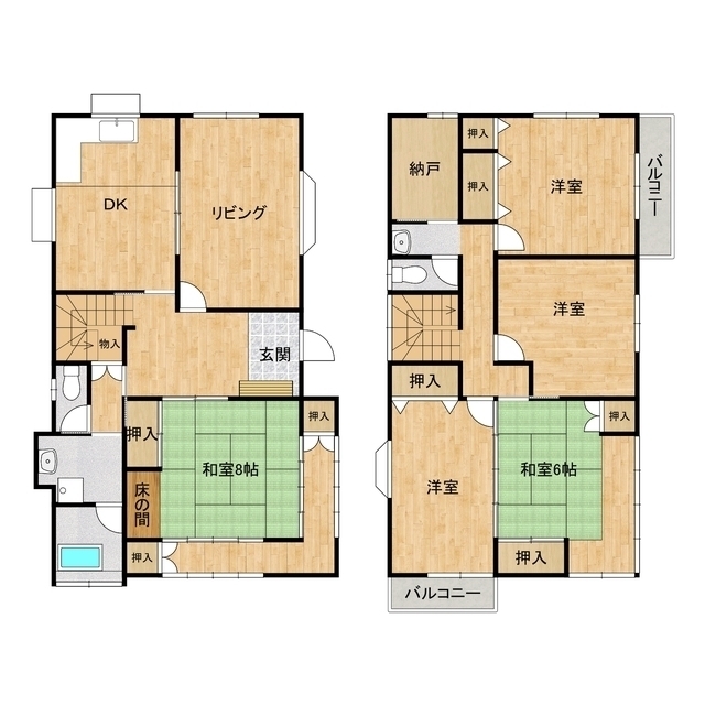 駐車場2台可!6DK+納戸の戸建☆